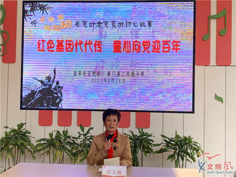 老黨員彭美勤分享入黨故事。盈翠社區(qū)供圖