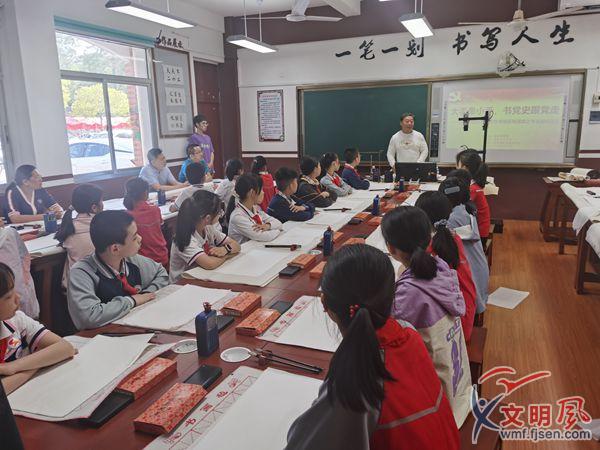 文明風4月23日訊(通訊員 文潔 鄒玒 黃靜怡)為進一步普及黨史知識,深化黨史學習教育,21日,由廈門市同安區蓮花鎮黨委主辦的“大手拉小手,書黨史跟黨走”書法培訓活動走進蓮花中心小學,通過書法教學為學生講述書法背后的黨史故事,讓黨史學習教育深入人心。