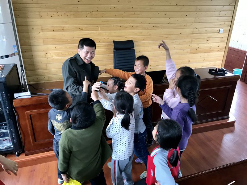劉永伙和高山上的孩子在一起。(同心慈善會供圖)