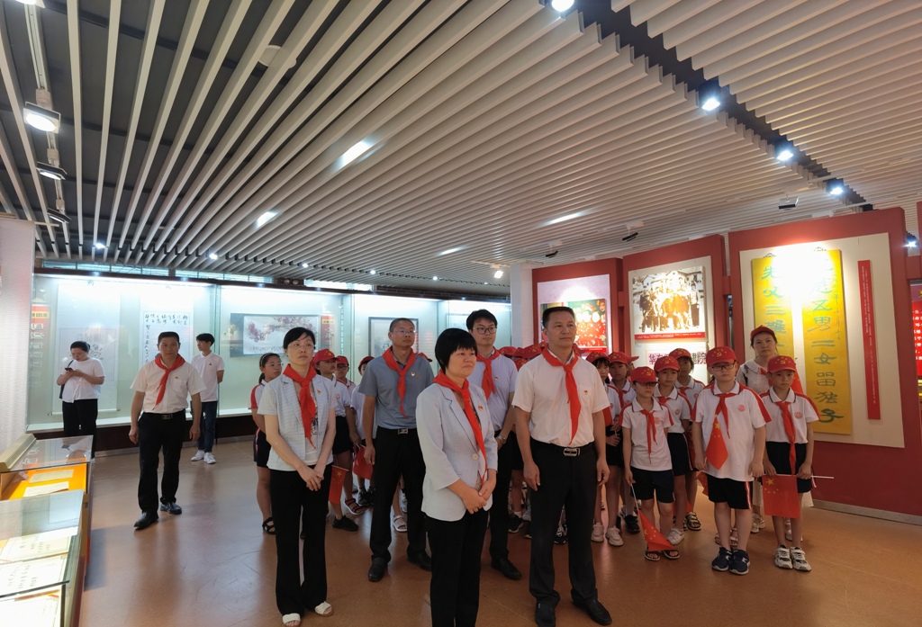 參加啟動儀式的縣領(lǐng)導(dǎo)、相關(guān)單位負責(zé)同志和學(xué)生代表到鄧六金展廳觀摩學(xué)習(xí)黨史知識 上杭縣委文明辦供圖