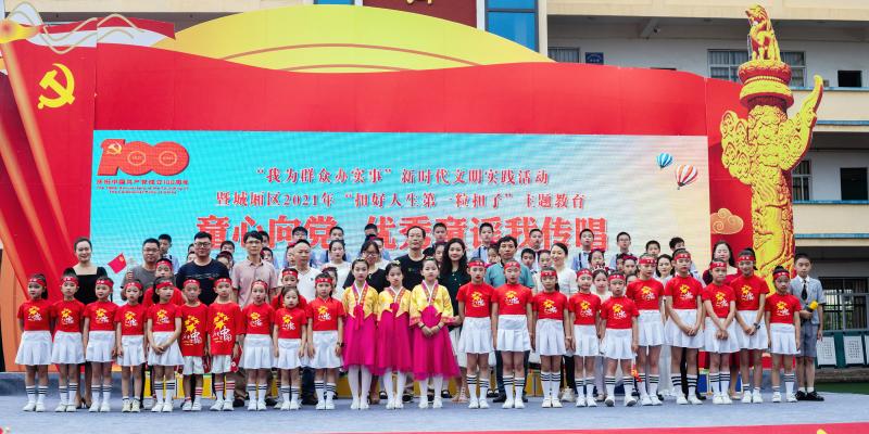 活動分童謠講黨史、童心頌黨恩、童聲敬黨情三個篇章,孩子們通過童謠的誦讀、傳唱和表演等形式,演繹了一場精彩紛呈的視聽盛宴,那一篇篇聲情并茂的誦讀、一個個激動人心的音符、一段段輕盈優美的舞姿,無不傳遞著學校的德育“芬芳”和孩子們的愛國熱情。展演中穿插的舞蹈《紅星閃爍》、十音八樂《出路皂羅袍》、戲曲表演《三拜花堂》等節目,不同藝術形式精彩紛呈,給參會人員留下強烈的視覺聽覺沖擊。活動現場,還展示了12篇原創優秀童謠作品和百人書畫主題展。