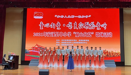 6月4日下午,由安溪縣委文明辦、縣教育局共同主辦的2021年安溪縣中小學生“童心向黨·唱支紅歌給黨聽”歌詠活動在安溪恒興中學大禮堂舉行,來自全縣有關學校的13支代表隊參加匯演,傳唱各類紅色經典歌曲。