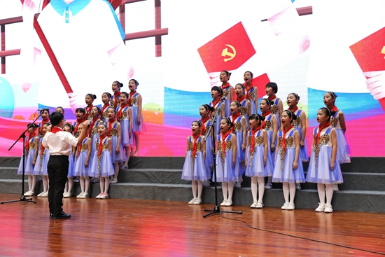 活動現場,一首《少年中國夢》拉開了歌詠匯演的序幕。緊接著,《追尋》《燈火里的中國》《游擊隊歌》《把一切獻給黨》《保衛黃河》等一曲曲耳熟能詳的經典歌曲陸續唱響,學生們用歌聲展示了知黨愛黨、永聽黨話、永跟黨走的精神風貌。