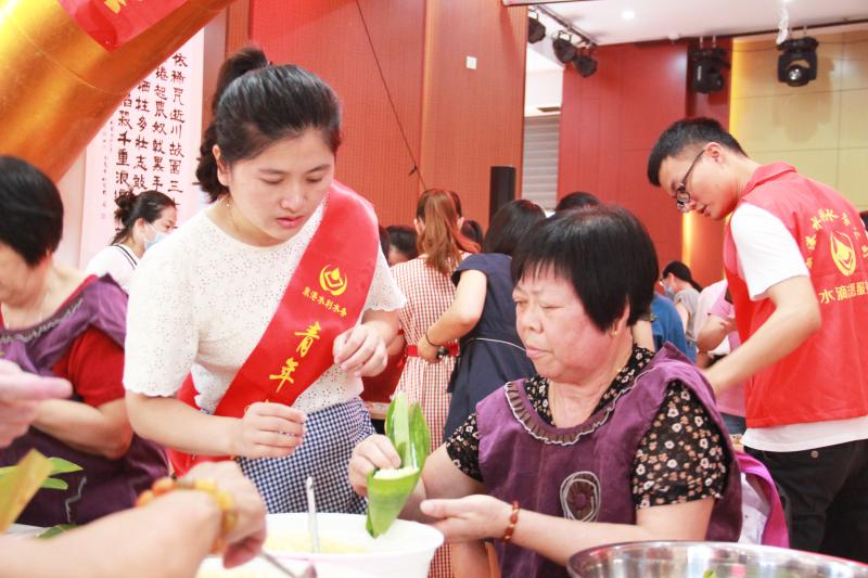 現(xiàn)場(chǎng)包粽子(泉港區(qū)委文明辦供圖 陳燕燕攝)