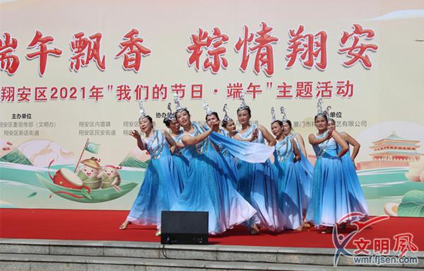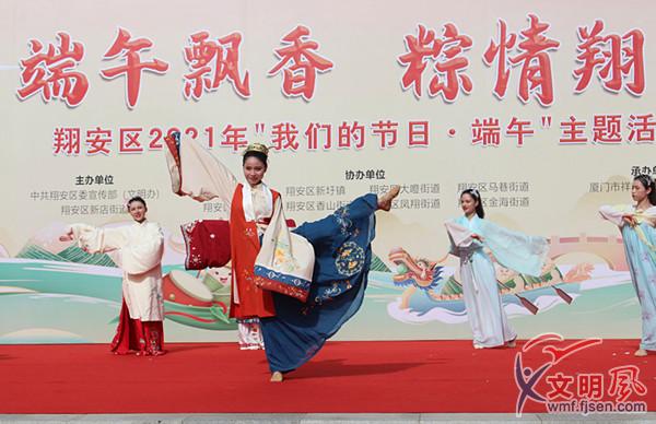 伴隨著歡慶的鼓聲,開場節目表演《喜慶大鼓》為活動增添了熱鬧的氣氛。整場演出緊扣優秀傳統文化主題,帶來了漢服舞蹈表演《禮儀之邦》、歌曲演唱《祖國你好》、舞蹈《翔安!你的名字很親》《好運來》等節目,呈現了“古典風”與“新時代”的巧妙融合。