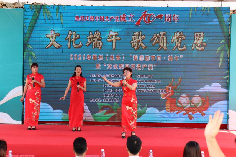 為進(jìn)一步吸引城鄉(xiāng)群眾在積極參與中傳承節(jié)日習(xí)俗,6月11日上午,由中共福州市委文明辦、永泰縣文明委主辦,永泰縣紀(jì)委監(jiān)委、縣委政法委、縣委宣傳部、縣委文明辦、縣人民法院、縣文化體育和旅游局、同安鎮(zhèn)政府承辦的“文化端午 歌頌黨恩——2021年福州(永泰)‘我們的節(jié)日·端午’暨‘文化和自然遺產(chǎn)日’”主題活動在同安鎮(zhèn)愛荊莊開展,形多樣的文藝節(jié)目向群眾傳遞著濃厚的傳統(tǒng)文化氣息。