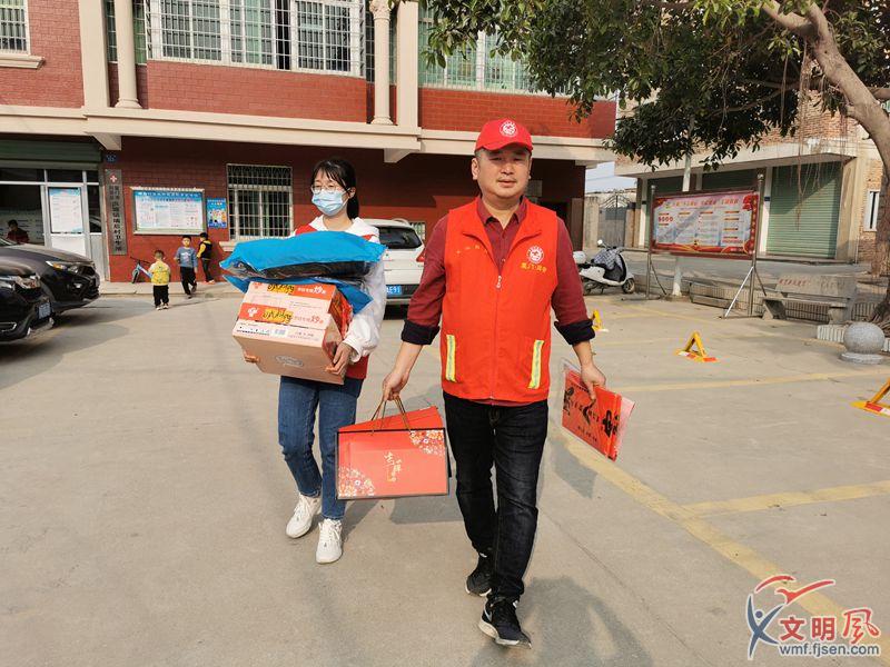 劉志勇(右)帶著志愿者慰問困難戶。(同安區委文明辦供圖)