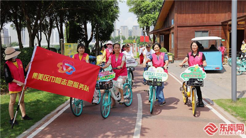 文明風6月22日訊(李霖 呂天浩)6月20日,廈門市集美區巾幗服務隊啟動儀式暨“低碳生活,綠色相約,環保出行”主題宣傳活動在杏林灣畔舉辦。