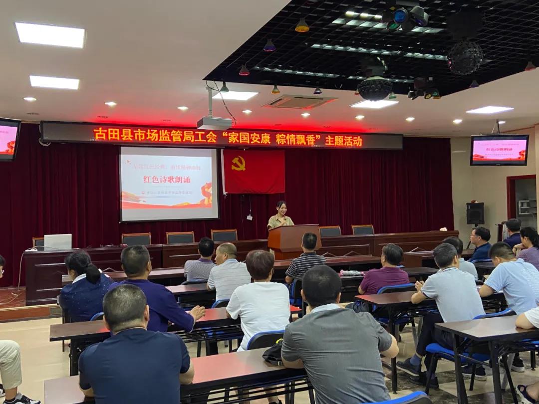 為弘揚(yáng)中華民族傳統(tǒng)文化,豐富干部職工的文化生活,營造文明、祥和、喜慶的端午節(jié)日氛圍。6月4日,古田縣市場(chǎng)監(jiān)督管理局開展“家國安康,粽情飄香”主題活動(dòng),結(jié)合黨史學(xué)習(xí)教育,通過詩歌朗誦、品讀紅色經(jīng)典、知識(shí)競(jìng)答、傳唱紅歌、包粽子和包包子等活動(dòng),感受傳統(tǒng)文化魅力,增強(qiáng)愛國主義情感。此次活動(dòng)共計(jì)70余人參加。