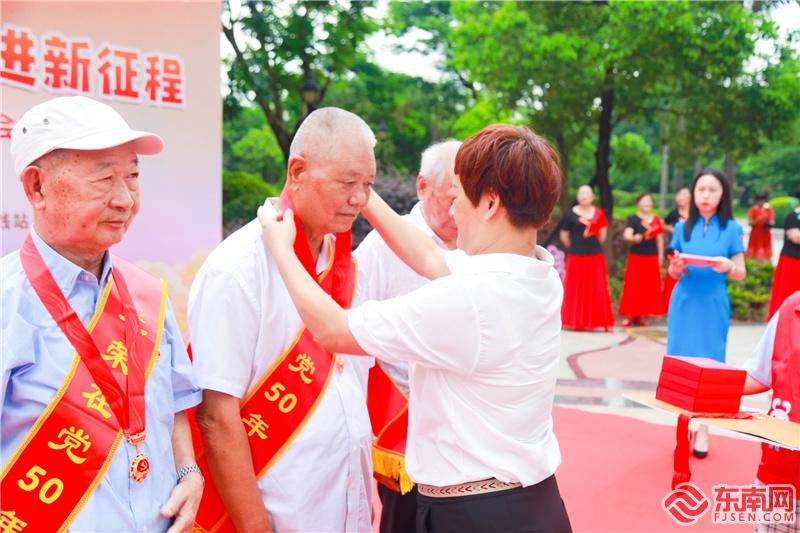 為龍山社區老黨員們頒發“光榮在黨50年”紀念章(龍山社區供圖)
