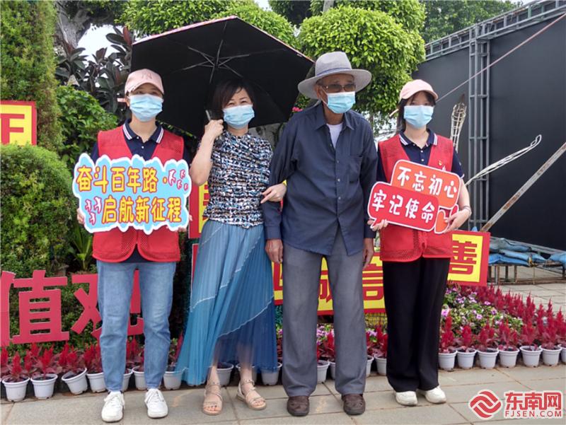 黨員志愿者與居民、游客共同參與“同框拍照慶百年”互動。(集美·誠毅志愿者聯(lián)盟供圖)