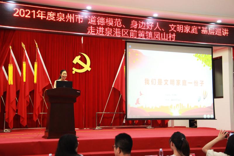 崇德向善,見賢思齊。道德模范、身邊好人、文明家庭是社會推崇、群眾愛戴的身邊榜樣。本次活動由泉州市委文明辦主辦,泉港區委文明辦、泉港區前黃鎮承辦。通過此次道德模范、身邊好人、文明家庭基層巡講活動的開展,學習宣傳道德模范的先進事跡,培養擔當民族復興大任的時代新人,弘揚共筑美好生活夢想的時代新風,為奮進新時代、共筑中國夢提供強大精神力量和道德支撐。(泉州市泉港區委文明辦供稿)