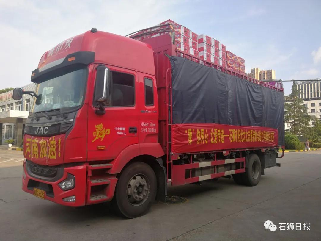 圖為滿載救援物資即將出發的大卡車 石獅日報供圖