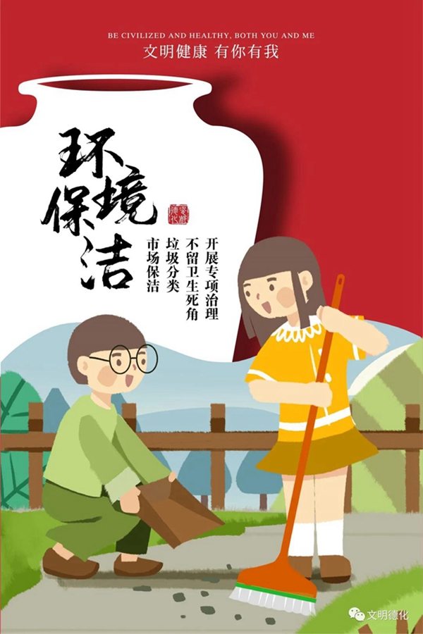 讓我們從現在做起,嚴格遵守公共道德準則和《德化縣市民文明公約》,摒棄各種不文明行為和生活陋習。管好自己的“嘴”,不隨地吐痰,不說粗話臟話,不說服務忌語,不在公共場所大聲喧嘩、吸煙;管好自己的“腿”,不闖紅燈,不亂穿馬路,不翻越交通護欄,不酒后駕車,不亂停放車輛,增強文明交通意識,自覺遵守和維護交通秩序;管好自己的“手”,不亂扔亂倒垃圾,不亂貼亂畫,不損毀綠地,不損壞公共設施;管好自己的“行”,自覺遵守行業規定,不占道經營,不欺騙顧客,做到文明經商、誠信經營。