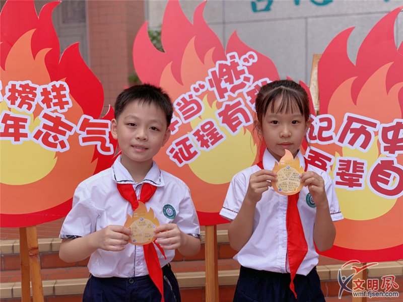 孩子們手繪“抗戰(zhàn)精神火焰?zhèn)鞒锌ā?。思明小學供圖