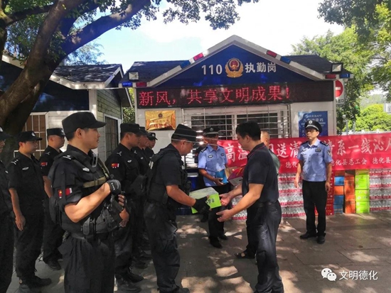 慰問組向長期以來冒著風雨、頂著酷暑,堅守在一線執勤的公安干警表示崇高的敬意并致以誠摯的慰問,感謝他們辛勤工作和無私奉獻,叮囑他們一定要注意防暑安全、加強自我防護,保證調休時間,以更加良好的精神狀態投入到下階段的創城攻堅工作之中。(德化縣委文明辦)