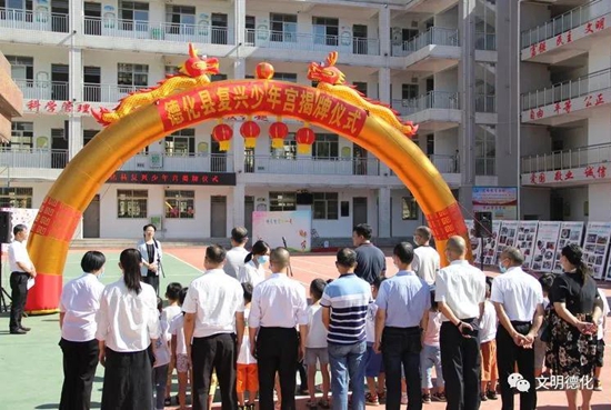 9月1日,德化縣“復興少年宮”在青少年學生校外活動中心舉行揭牌儀式。縣委常委、宣傳部長張秋英出席并講話,縣委文明辦主任陳正忠,縣教育局局長黃文和,縣委文明辦、教育局分管領導,校外活動中心負責人以及教師、學生代表等參加儀式,儀式由縣黃文和主持。