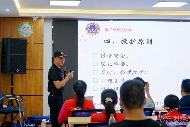 廈門公共安全宣講師、廈門市救生協會會長莊鷺杰作為培訓教師,為志愿者們進行應急救護技能培訓,讓志愿者在志愿服務過程中能夠做好自救和互救。莊鷺杰有豐富的應急救護經驗,培訓中,他采用理論知識講解和實際操作相結合的方式,以生動有趣的語言、真實的案例,詳細講解了應急救護的基本知識。