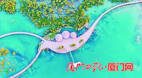 鳥瞰翔安下潭尾濕地公園。(鄭小濱 攝)