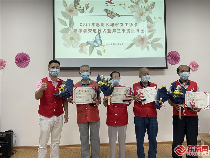 為表達對年長志愿者的美好祝愿,感謝年長志愿者對志愿服務事業發展做出的努力,日前,廈門市思明區城市義工協會舉辦志愿者“榮譽退休”儀式暨致敬長者志愿者的活動,為包括藍永生、董玉蓮、柯秀清等16位超過70周歲的長者志愿者頒發“榮譽退休證書”及專屬紀念獎杯。