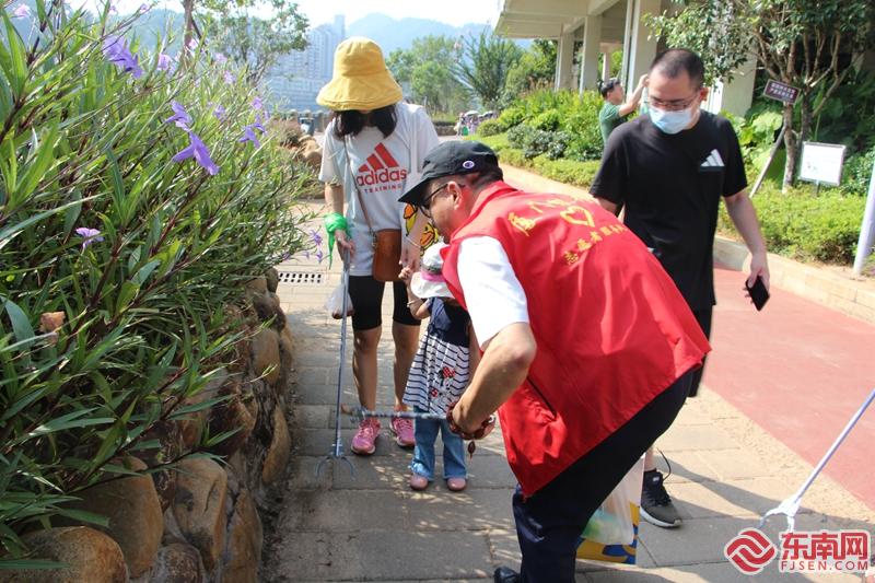 現(xiàn)場(chǎng)50余名志愿者排著長(zhǎng)隊(duì),現(xiàn)身南平市延平區(qū)小水門公園,開展垃圾撿拾、“減量低碳”知識(shí)互動(dòng)問答、垃圾分類互動(dòng)游戲等系列環(huán)保公益活動(dòng)。