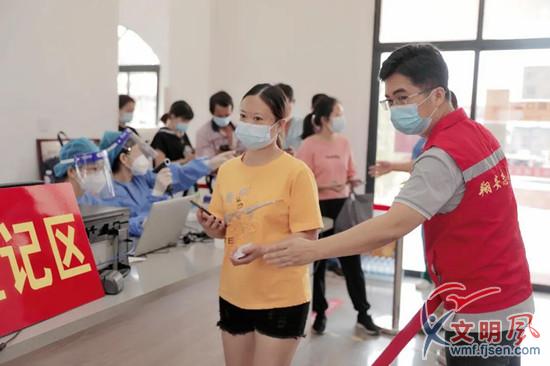 志愿者在現場測量體溫(翔安區委文明辦供圖)