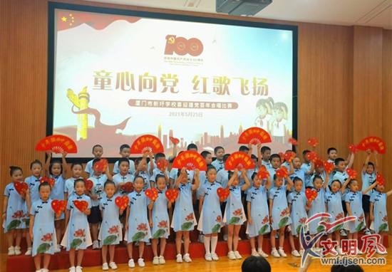 “童心向黨 紅歌飛揚”校園合唱比賽(廈門市新圩學校 供圖)