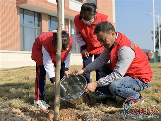 校長與小小志愿者參與植綠護(hù)綠活動(dòng)(廈門市新圩學(xué)校 供圖)