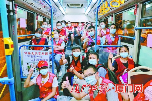 昨日凌晨,翔安的黨員干部和志愿者已經集結完畢,乘坐開往同安的車輛,奔赴疫情防控第一線。 朱毅力 攝