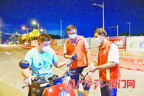 同安區(qū)創(chuàng)業(yè)促進(jìn)會志愿服務(wù)隊(duì)堅(jiān)守卡口,參與一線防疫。(夏海濱 攝)
