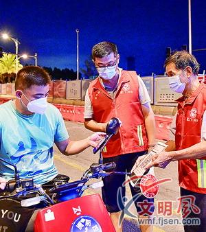 打虎親兄弟,上陣父子兵。陳明旺在一線服務的同時,他75歲的父親陳榮坤也在丙洲小學核酸檢測點當志愿者,連日來早出晚歸,勸導村民保持一米線,文明排隊核酸檢測。據了解,作為社區老人協會理事,他平時就經常參加公益活動。