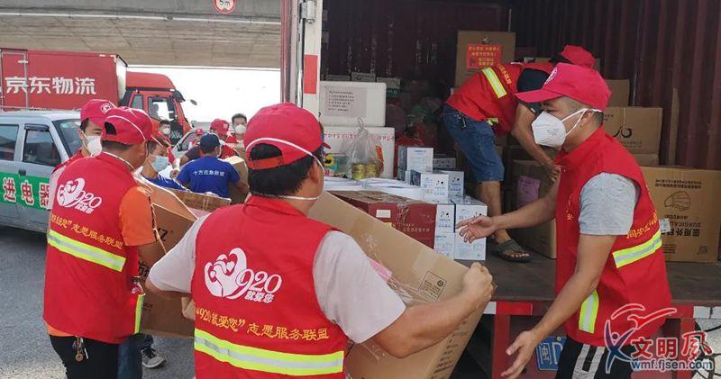 東山民俗文化志愿者協會愛心服務車隊搬運物資。(同安區委文明辦供圖)