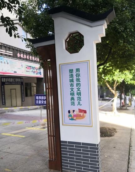 路口增設公益廣告景觀小品。德化縣委文明辦 供圖