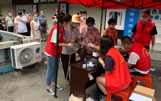 在核酸檢測采樣點,志愿服務有條不紊地進行,志愿者們一起參與采樣點現場布置、設施調試,為核酸檢測提前做好準備;和醫務人員一起參加核酸檢測者身份核對、錄入工作,以及采樣現場維序、勸導任務,確保參檢人員落實保持1米線安全距離、全程佩戴口罩、有序排隊、自覺防護。盡管防疫志愿服務可能存在風險,盡管天氣炎熱已然令他們汗流浹背,但他們仍然默默堅守,懷著滿腔的熱情,為核酸檢測工作盡自己的最大努力。力爭在最短的時間內將疫情的影響降到最低。