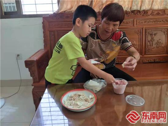 孩子和奶奶一起包扁食(王昕煒 攝)