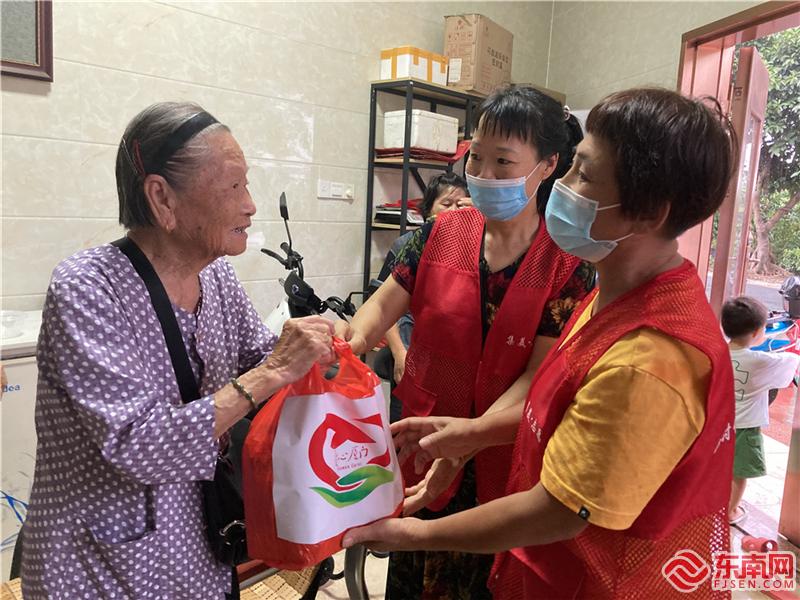 志愿者送上暖心禮包(田頭村新時代文明實踐站供圖)