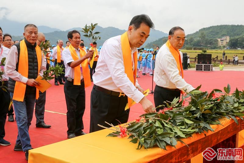 參加2021朱子祭祀典禮祭祀人員向朱熹塑像敬獻桂枝 邱汝泉 攝