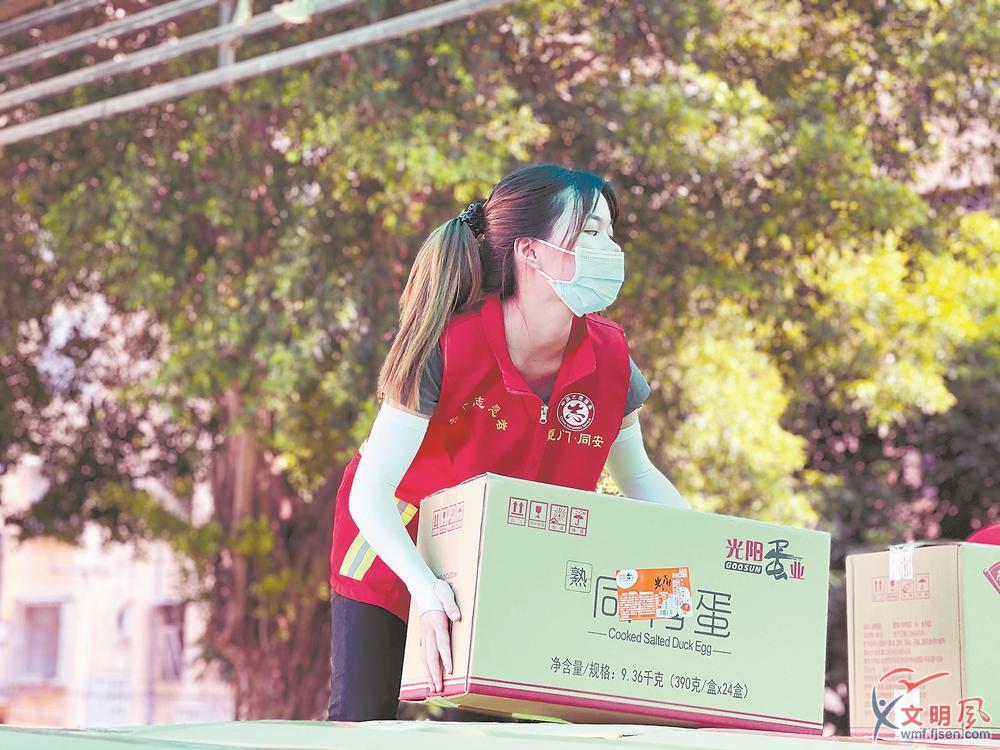 同安區青年企業家協會志愿者組成突擊隊,為封控管控區運送物資。(同安區青企協供圖)