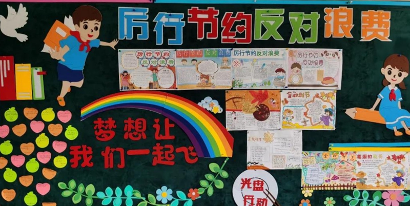 學(xué)校利用國(guó)旗下講話,開(kāi)展文明餐飲教育。號(hào)召全體師生積極行動(dòng)起來(lái),愛(ài)惜糧食,適量盛飯,不挑食,杜絕浪費(fèi),踐行光盤(pán)行動(dòng),共創(chuàng)節(jié)約型和樂(lè)校園。同時(shí),各班級(jí)還繪制了以“厲行節(jié)約 反對(duì)浪費(fèi)”為主題的黑板報(bào),字里行間述說(shuō)著節(jié)糧的意義。