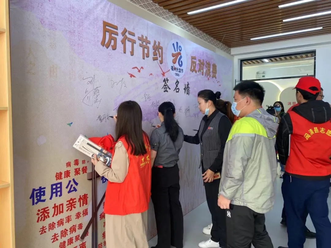 活動開場,閩清縣啟源酒店負責人代表閩清縣餐飲服務單位宣讀《承諾書》,餐飲服務單位代表們鄭重地簽署了《承諾書》;隨后,閩清縣工信局志愿者為大家帶來《文明餐桌、公勺公筷》知識宣講。最后活動參加者共同在“厲行節約 反對浪費”簽名墻上簽名。活動現場還開展了“福州光盤節”有獎知識互動問答,搶答正確即可獲贈公筷公勺套裝。在場群眾和志愿者們踴躍回答、積極參與,氣氛熱烈高漲。活動結束后,各級文明單位還組織志愿者們開展了文明餐桌、創城、垃圾分類等志愿服務宣傳活動。文明始于心,健康始于行。從現在開始,讓我們行動起來,積極主動參與“公筷公勺·健康你我”行動,切斷病毒“口口相傳”的途徑,堅決打好“舌尖上的防疫戰”,讓健康、衛生、文明的就餐方式惠及每個人,為在更高起點、更高層次、更高目標上加快建設幸福新閩清貢獻力量!(供稿單位:閩清縣委文明辦)