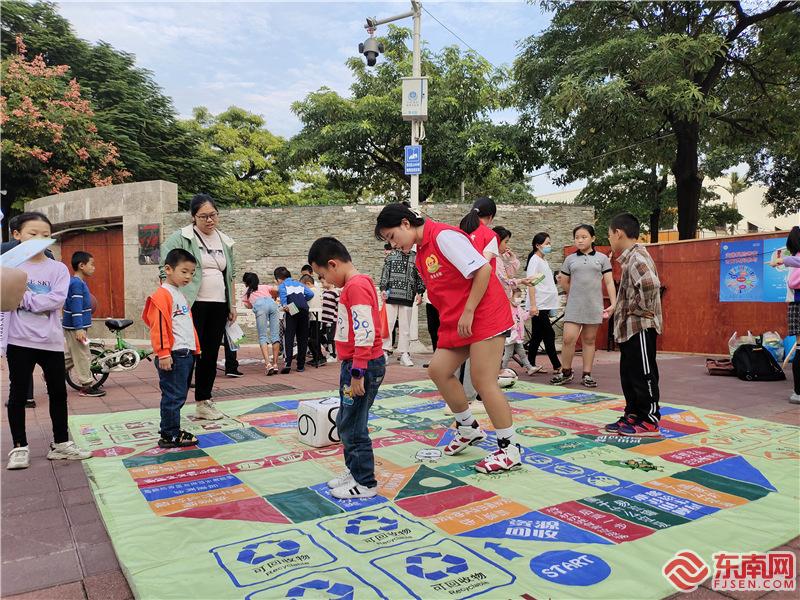 10月31日下午,杏濱街道新時代文明實踐志愿服務隊在西濱社區(qū)杏濱文化廣場開展“倡導文明新風,助力文明城市”志愿服務活動。圖為志愿者引導居民參與“垃圾分類飛行棋”游戲互動。(集美·誠毅志愿者聯(lián)盟供圖)
