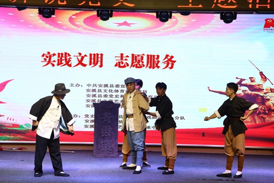 紅色戲劇宣講建黨精神。為慶祝建黨100周年,開展黨史學習教育,創作排演《青云樓事件》《陳鳳伍》《一封家書》《靠自己骨頭長肉》等系列小戲,深入全縣村居、學校演出,宣傳偉大建黨精神。