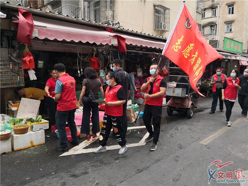 志愿者走入轄區人員密集的文塔菜市場、超市門口、熱門商鋪、背街小巷等地發放宣傳材料。西邊社區供圖