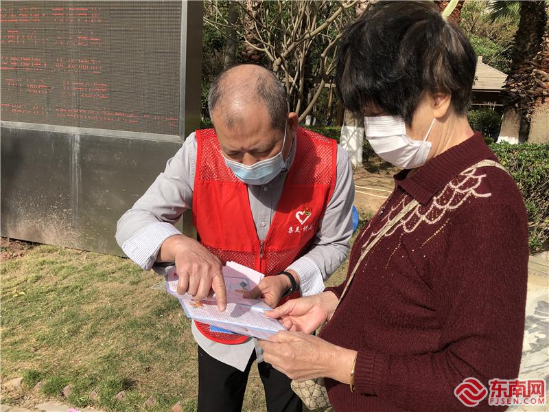 志愿者耐心地向居民講解宣傳文明創(chuàng)城基本知識(shí)(余麗清 攝)