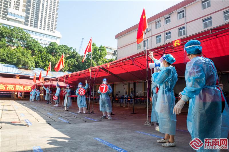 場地,就是擺在他們面前的首個難題?!拔覀冾A估檢測人數會達到每輪次16000人次,那就必須要有14臺機器才能輪轉得開,所以找好場地很重要”,張惠霞說,廈禾社區是老城區的繁華地帶,人口密度很大,但是高樓多,空地少。為了尋找合適的場地,社區工作人員頂著時下35℃的高溫,在轄區各處奔走。最終在多方力量的幫助下,將角濱汽修廠定為廈禾社區核酸采樣點。找到場地后,社區工作人員們又和思明環衛保潔人員們一起,清理油污、消殺平整場地、接電續水,終于趕在天亮前,為首輪核酸檢測工作做好了周全準備。