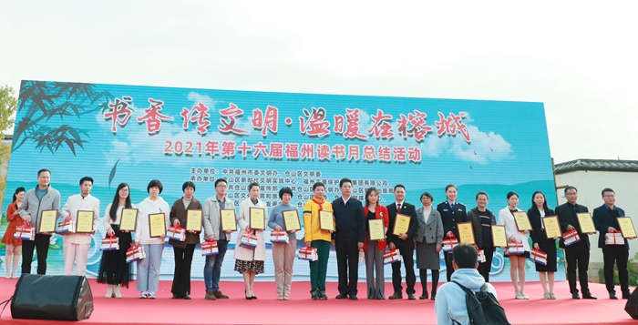 文明風12月16日訊(通訊員 傅小芳 馬琳嶸)雅言傳承文明,文明點亮人生。為進一步深化福州讀書月活動,夯實“書香榕城”建設,營造“文明福州 書香滿城”的良好社會風尚,2021年12月15日下午,由中共福州市委文明辦、倉山區(qū)文明委主辦,倉山區(qū)新時代文明實踐中心、福州古厝保護開發(fā)集團有限公司、中共倉山區(qū)委宣傳部、中共倉山區(qū)委文明辦、倉山區(qū)新聞出版局、倉山區(qū)文化體育和旅游局、倉山團區(qū)委、倉山區(qū)融媒體中心、倉山區(qū)旅游事業(yè)發(fā)展中心、倉山區(qū)城門鎮(zhèn)人民政府聯(lián)合承辦的“書香傳文明·溫暖在榕城”2021年第十六屆福州讀書月總結(jié)活動在倉山區(qū)梁厝特色歷史文化街區(qū)開展。第十六屆福州市“書香人家”“讀書明星”“幸福悅讀家”“福州,你讀書的樣子真美”獲獎者以及倉山區(qū)新時代文明實踐講習基地代表參加了本次活動,并獲贈黨史類書籍。