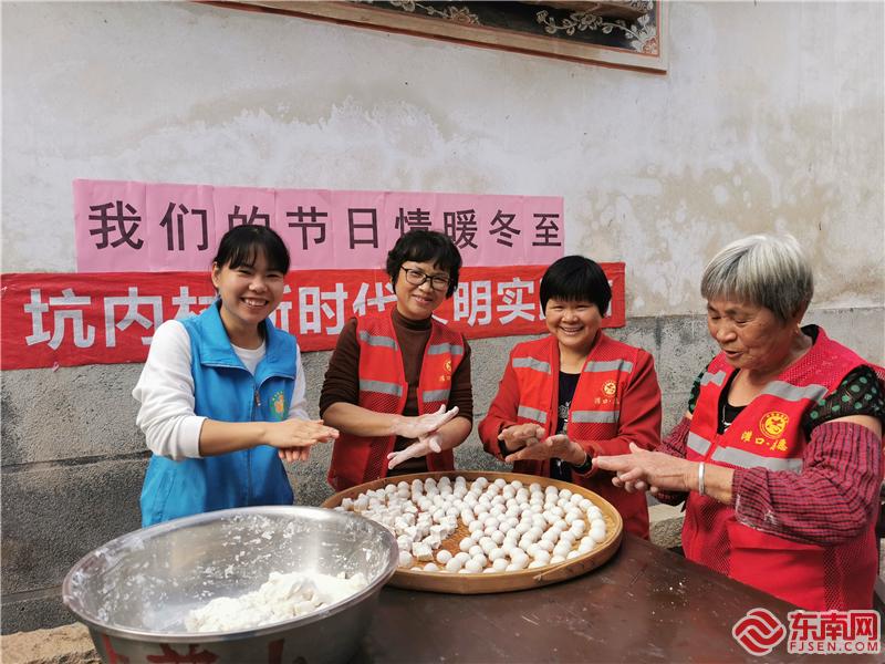 社區老少、親子家庭搓湯圓迎“冬至”(坑內村新時代文明實踐站供圖)