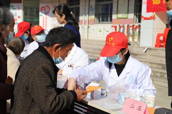活動現(xiàn)場,縣醫(yī)院醫(yī)務(wù)人員一邊為群眾科普健康知識,免費測量血壓、血糖,一邊詳細(xì)詢問他們的身體狀況,答疑解難,并免費發(fā)放藥品,活動井然有序,現(xiàn)場滿是濃濃的溫情。