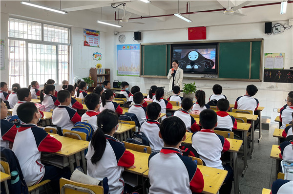 “同學們,你們知道什么是‘有害出版物和信息’嗎?”講臺上,鎮(zhèn)海街道綜合文化站工作人員劉立菲結合教育短片,通過宣讀倡議書、發(fā)放宣傳資料、組織學生觀看“護苗·網(wǎng)絡安全課”等形式,幫助未成年人樹立健康向上的思想品德。