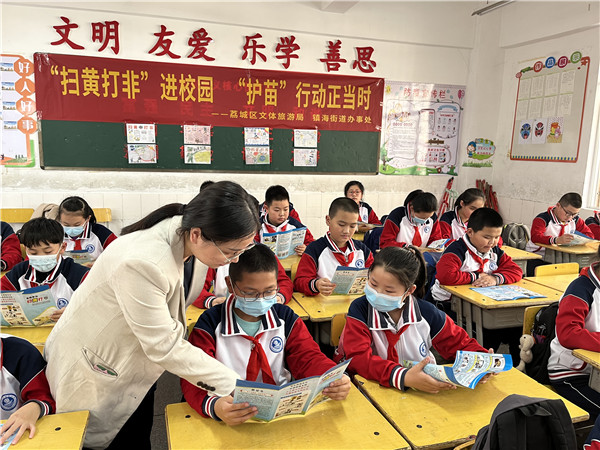 文明風12月22日訊(通訊員 吳炳端 葉振喜 文/圖)為護助少年兒童健康成長,抵制有害出版物和信息,日前,莆田市荔城區(qū)鎮(zhèn)海街道聯(lián)合荔城區(qū)文體旅游局在荔城區(qū)麟峰小學開展“‘掃黃打非’進校園,‘護苗’行動正當時”宣傳活動。該活動旨在引導學生自覺抵制和遠離非法有害出版物及信息,引導青少年綠色閱讀、文明上網(wǎng),保護未成年人身心健康,營造良好的校園文化環(huán)境。